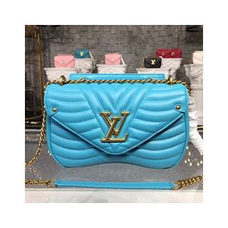 루이 비통 뉴 웨이브 체인 백 MM은 최고급 소가죽으로 제작되었습니다. 상단 핸들쪽에 루이 비통의 로고가 금속 디테