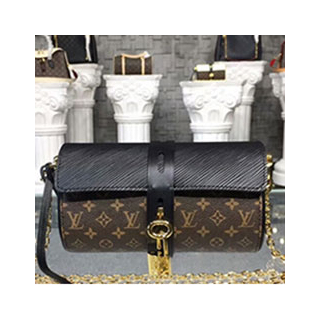 글라스 케이스 핸드백은 익숙한 모노그램 프린트와 신선한 자물쇠 잠금장치로 완성됐습니다. 에피 가죽과 모노그램 코팅 캔