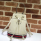 오피디아 버킷백. 화이트 가죽과 하단을 따라 블루와 레드 웹(Web) 스트라이프 인레이. 탑 핸들 및 체인 숄더 스트랩으로 두 가지 스타일로 활용 가능한 스타일.